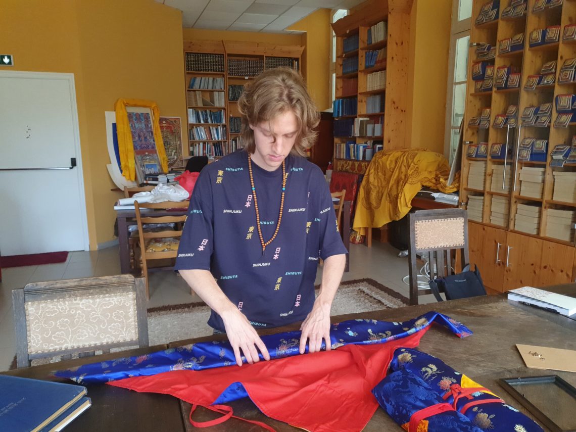 Когда мне было семь лет, я начал ездить в монастырь Менри на два-три месяца в год вместе с родителями. Когда мне исполнилось двенадцать, я провел там целый год самостоятельно. Именно тогда я начал учиться более последовательно. У меня было четыре урока в день с наставником: чтение, грамматика, упражнения на понимание до определенной степени и письмо. Затем у меня также были уроки по ритуалам: как выполнять Йеше Валмо, гом чо нам сум и чод. Через год мой тибетский стал значительно лучше.