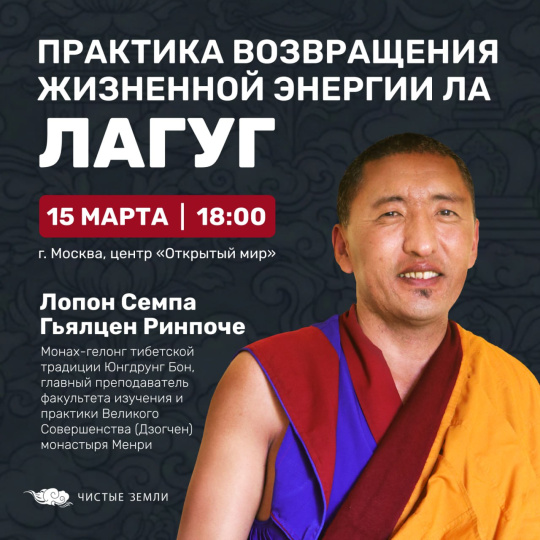 15 марта Лопон Семпа Гьялцен Ринпоче проведёт в Москве практику возвращения жизненной энергии «ла» (лагуг)